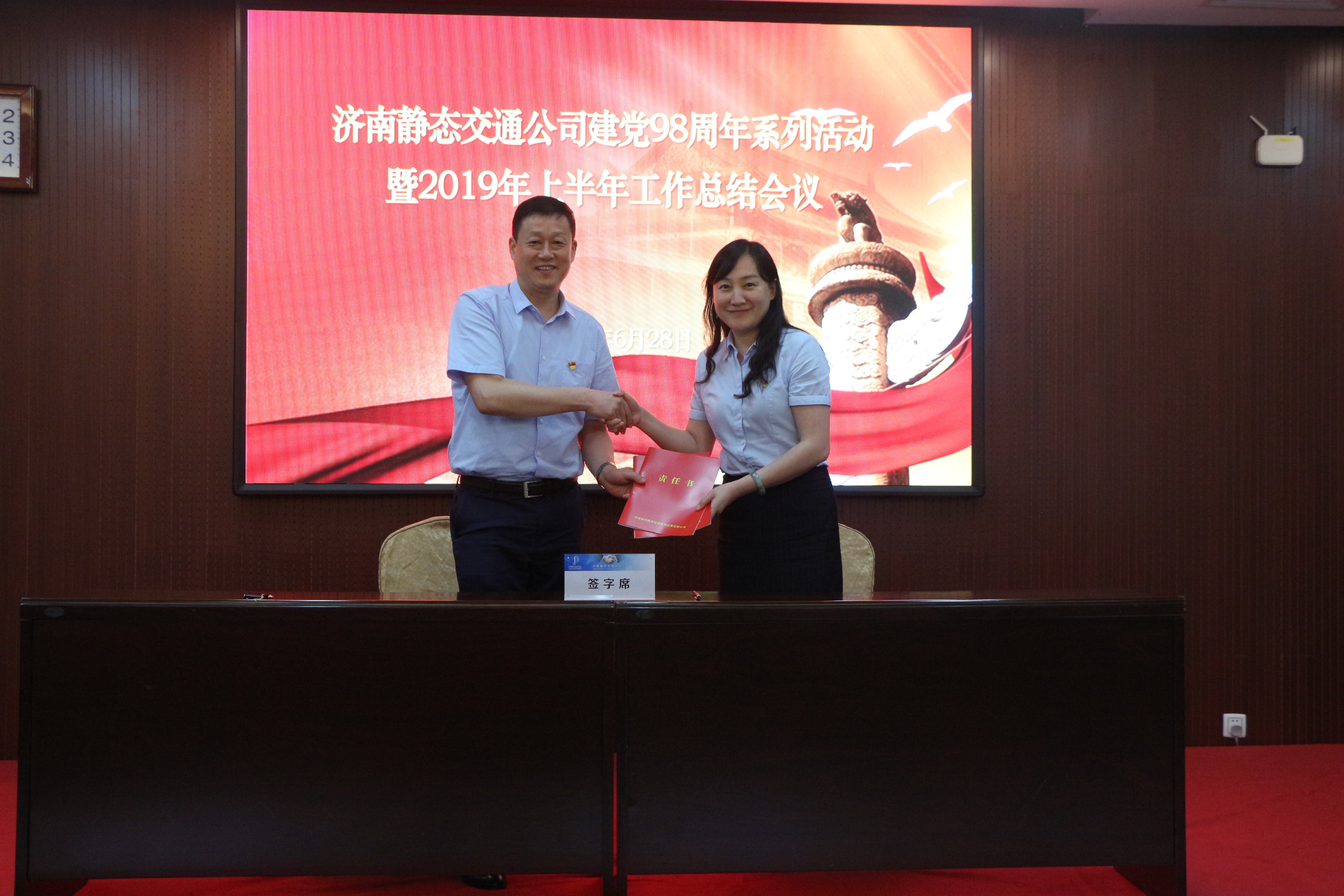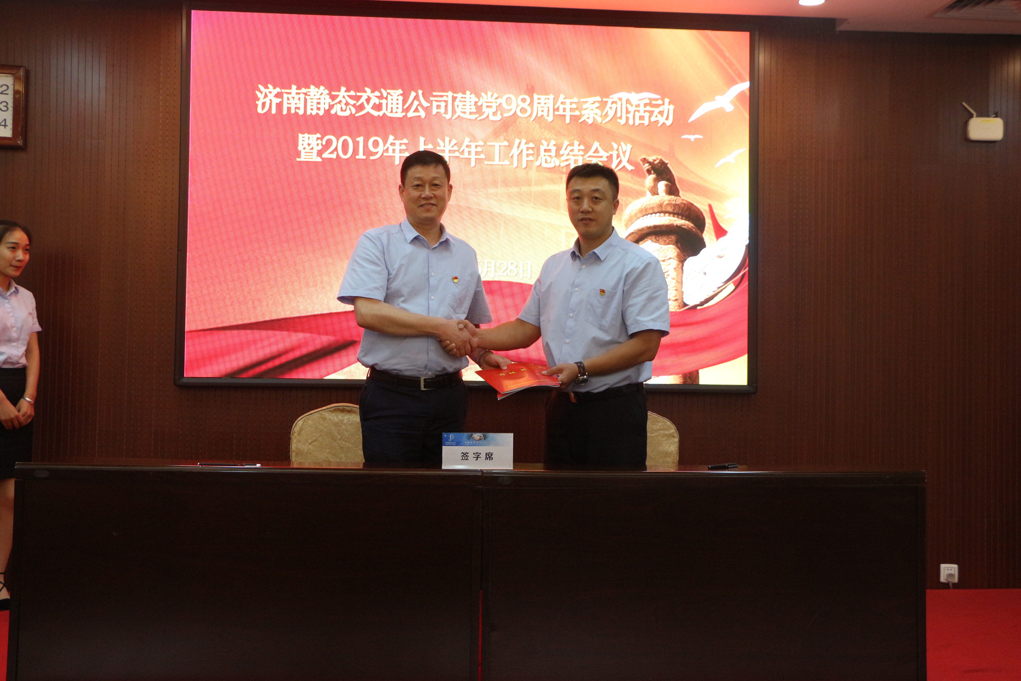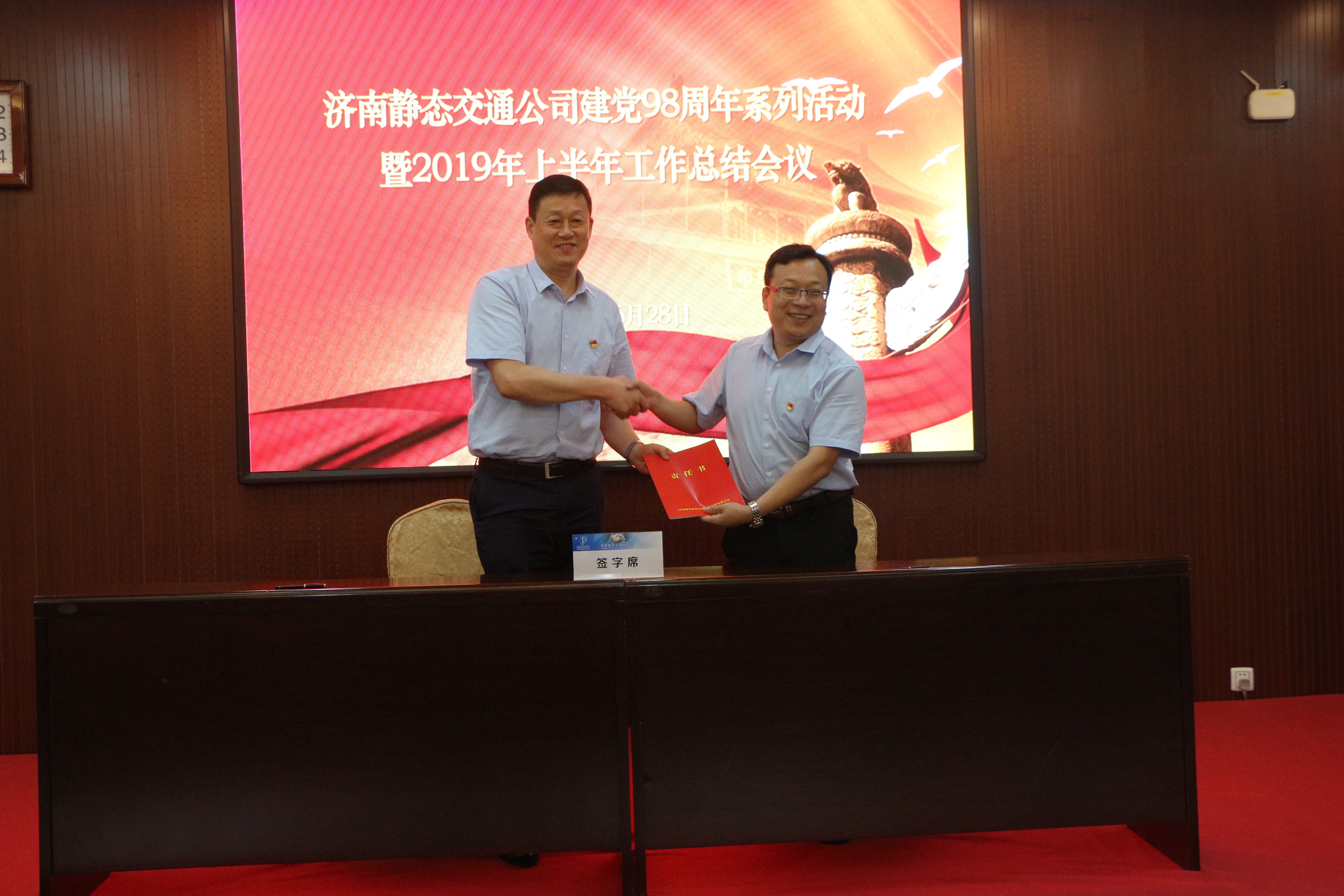 6月30日下午,濟南靜態(tài)交通集團與歷城交警大隊在“七一”前夕,隆重舉行了“牢記初心使命、共譜警企新篇”黨建共建簽約啟動暨共建基地揭牌儀式。此次活動是濟南靜態(tài)交通集團與歷城交警大隊圍繞“立足民生,為群眾解決停車難、停車亂問題”的目的,創(chuàng)新黨建工作形式和載體的一次全新嘗試,是全面貫徹落實“不忘初心、牢記使命”主題教育活動精神的全新舉措,也是雙方以黨建引領促進拓寬交流渠道、深化警企合作,實現共融、共